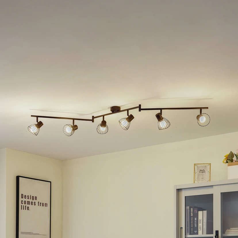 Piena, plafoniera a 6 luci in ferro nero