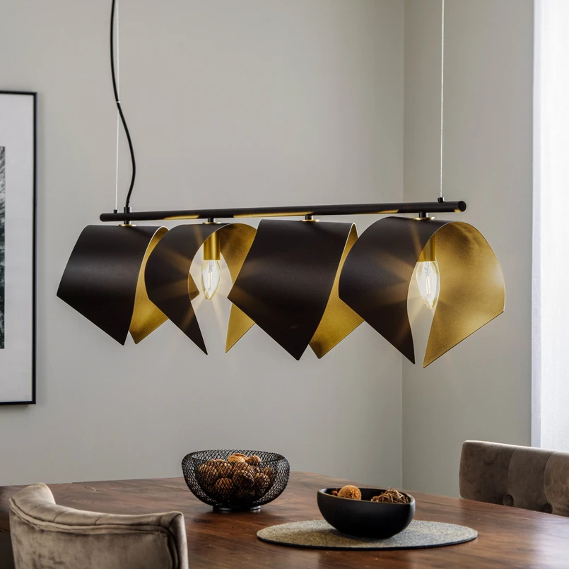 Lampada a sospensione di design Mikolay in acciaio di colore nero sabbia Mikolay è una fonte di luce affidabile e un attraente elemento decorativo per interni. La lampada a sospensione è costituita da un puntone allungato che sostiene orizzontalmente quattro paralumi. Questi paralumi hanno un design speciale con elementi curvi e possono essere dotati di sorgenti luminose appropriate. La forma allungata della lampada a sospensione Mikolay è ideale per essere installata sopra un tavolo e fornisce una piacevole illuminazione durante i pasti. Anch'essa è realizzata in acciaio ed è disponibile in un armonioso colore nero-sabbia. L'idea per lo stile della lampada proviene dal portfolio di Ingo Thiele.