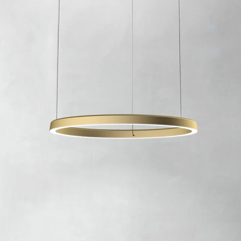 Lampada a sospensione Compendium Circle - linguaggio del design armonioso con tecnologia LED L'imponente lampada LED a sospensione Compendium Circle, nata dalla fucina del tradizionale produttore di illuminazione Luceplan, colpisce a prima vista per la sua forma semplice. Un cerchio, simbolo di armonia per eccellenza, funge da forma geometrica di base per il design di successo. Come se fluttuasse nell'aria, l'apparecchio Compendium Circle fornisce un'illuminazione moderna, anche per ambienti di grandi dimensioni. Una caratteristica speciale di questo apparecchio è che può essere montato in diversi modi. Mite, con la luce che fatto verso il basso, come faretto. Die è perfetto per essere utilizzato, ad esempio, sopra un tavolo da pranzo o un tavolino in salotto. Andes, la lampada a sospensione Compendium Circle può anche essere montata con la luce rivolta verso l'alto, creando una luce d'ambiente indiretta che fatto verso il Deck.
