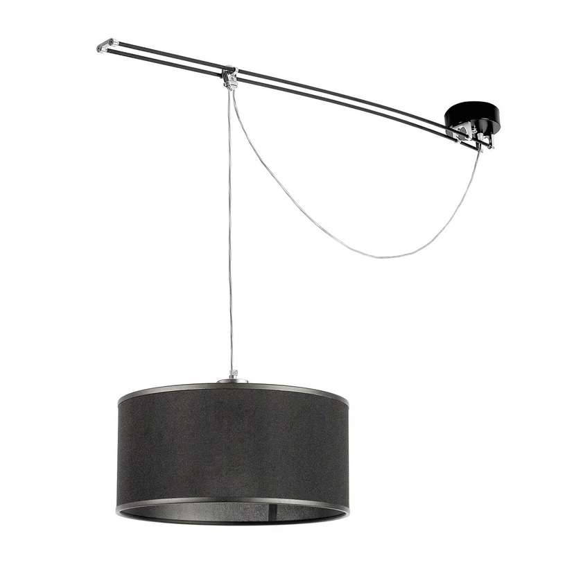 Lampada a sospensione Moove con braccio regolabile e paralume in tessuto