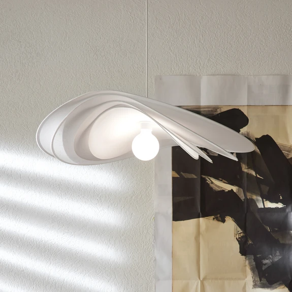 Lampada a sospensione a una luce Selenitis in carta di Murano bianca Quattro strati di carta di Murano tirati verso il basso formano il paralume della lampada a sospensione Selenitis, completamente bianco. La lampada a sospensione del marchio di design francese MARKET SET è dotata di una presa E27 alla base del paralume ed è ideale come fonte di luce centrale nella stanza.