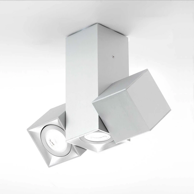 La plafoniera Dau Spot è composta da tre elementi. Una macchia rigida e allungata al centro e due macchie a forma di cubo a sinistra e a destra. L'apparecchio può essere ruotato di 300°. I componenti esterni possono inoltre essere ruotati di 300°. Questo permette di dirigere la luce come si vuole e di enfatizzare certe zone. La flessibilità offerta da Dau non viene utilizzata solo negli spazi abitativi privati, ma preferibilmente anche nel settore commerciale.