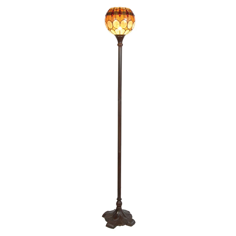 La lampada da terra Niley in stile Tiffany diffonde una luce accoglienteIl paralume in vetro arrotondato della lampada da terra Niley è lavorato nel tipico stile Tiffany. Gli elementi in vetro color arancio creano una luce accogliente quando l'apparecchio è acceso. Il sottile corpo della lampada termina con una base decorativa che garantisce un appoggio sicuro.