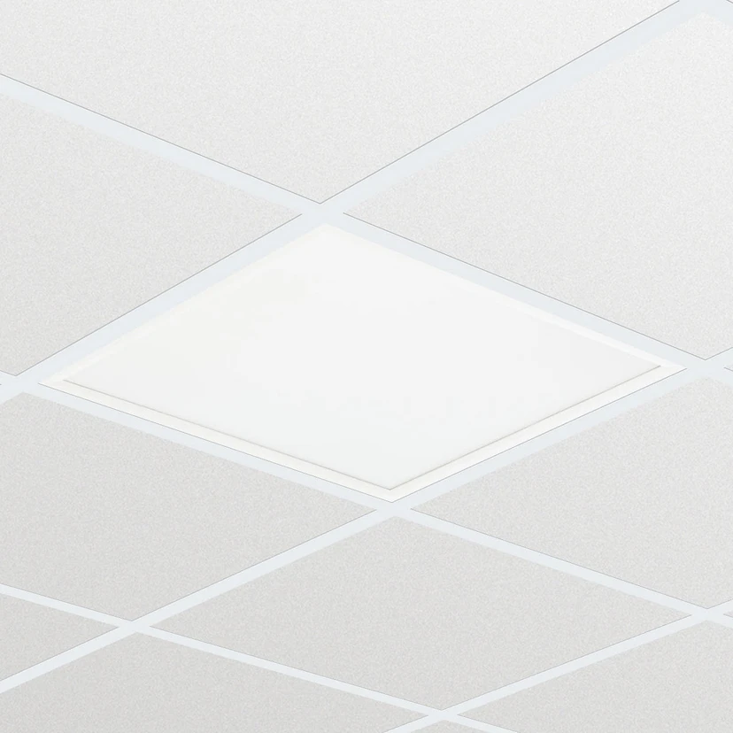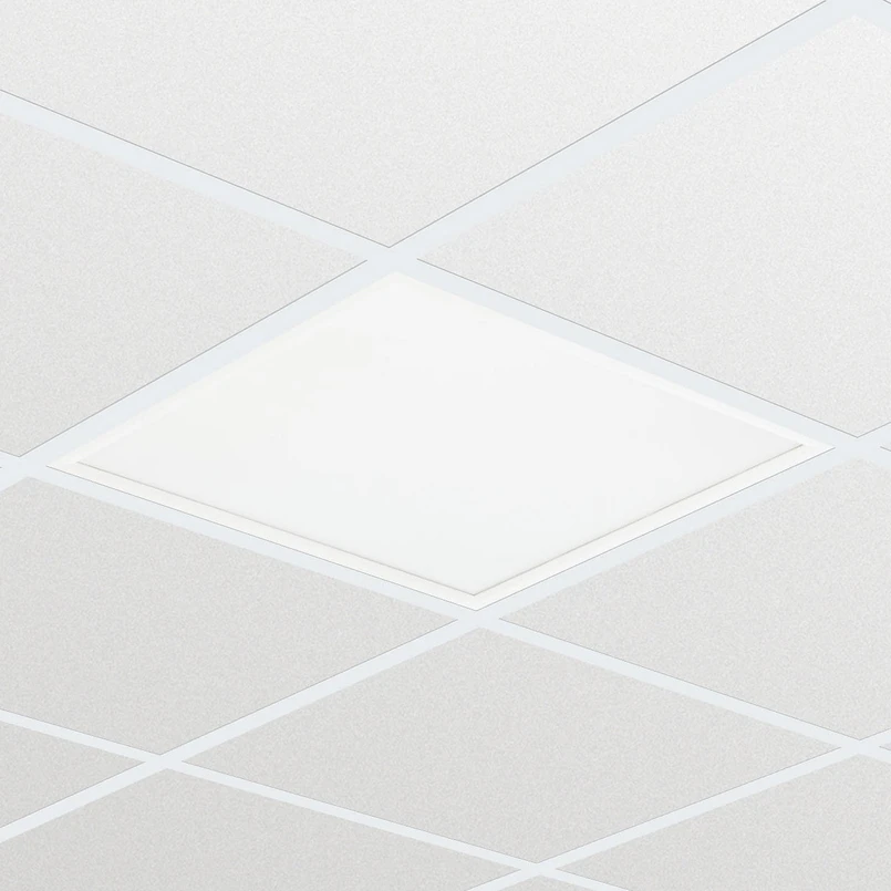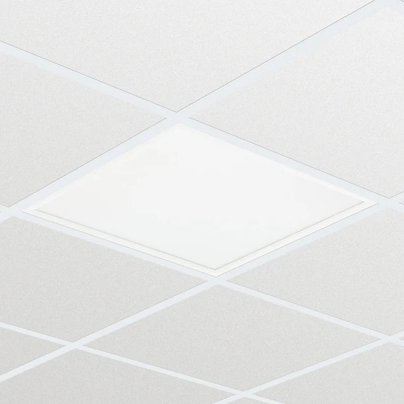 Il pannello da incasso RC132V della serie Philips CoreLine consente un'illuminazione diretta e su vasta scala in ufficio, anche sopra le postazioni di lavoro VDU grazie al basso effetto di abbagliamento. L'apparecchio è dimensionato per l'uso in soffitti a griglia 60 x 60 cm. Il telaio è in acciaio laccato bianco, mentre il diffusore in plastica opalina assicura un'emissione di luce omogenea su un'ampia superficie.