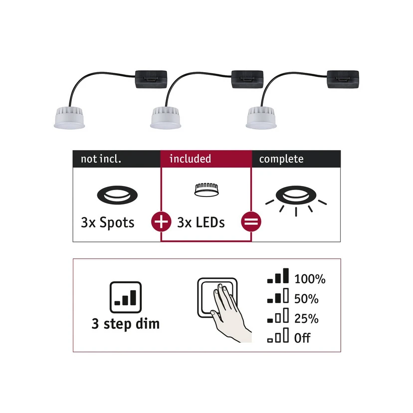 Paulmann Choose Coin LED 3-step-dim 100° 2700K 3x