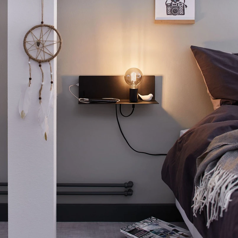 Lampada da parete Devara con pratico ripiano, cavo e spina