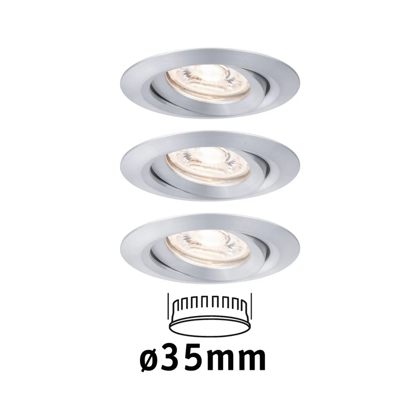 Luce da incasso orientabile a LED Nova mini in una vantaggiosa confezione da 3 Grazie al design semplice e alle dimensioni ridotte, queste piccole luci da incasso orientabili a LED possono essere utilizzate in vari modi in casa. Le sorgenti luminose dei faretti da incasso, i cosiddetti Coin, hanno la particolarità di poter essere sostituite. Possono essere collegate l'una all'altra a seconda delle esigenze, senza limiti di numero. Grazie alla loro forma piatta, possono essere utilizzati in cavità di profondità particolarmente ridotta. È inoltre possibile orientare l'apparecchio fino a 15° per dirigere il fascio luminoso in modo più preciso.