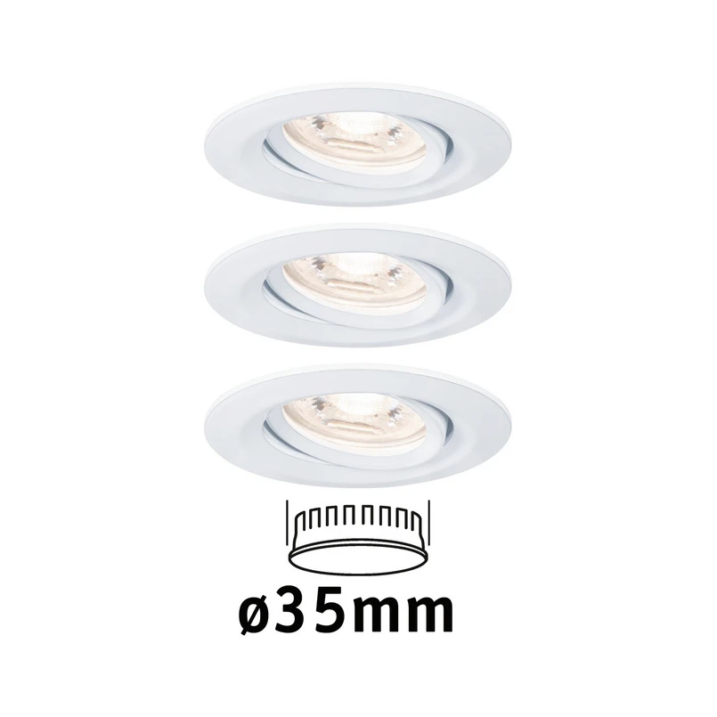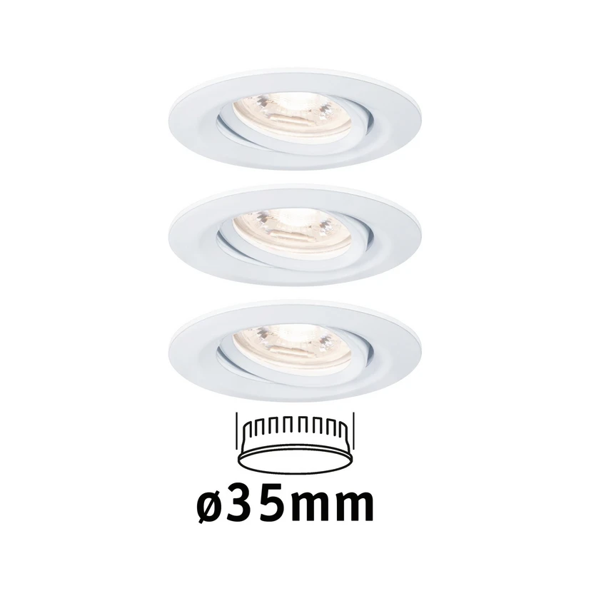 Luce da incasso orientabile a LED Nova mini in una vantaggiosa confezione da 3 Grazie al design semplice e alle dimensioni ridotte, queste piccole luci da incasso orientabili a LED possono essere utilizzate in vari modi in casa. Le sorgenti luminose dei faretti da incasso, i cosiddetti Coin, hanno la particolarità di poter essere sostituite. Possono essere collegate l'una all'altra a seconda delle esigenze, senza limiti di numero. Grazie alla loro forma piatta, possono essere utilizzati in cavità di profondità particolarmente ridotta. È inoltre possibile orientare l'apparecchio fino a 15° per dirigere il fascio luminoso in modo più preciso.