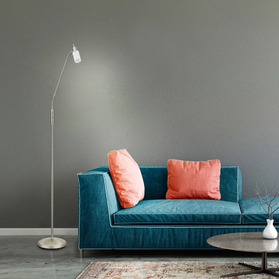 Semplice e moderna, la lampada da terra MAX è una fonte di luce ottimale in tutti gli spazi abitativi. Il braccio flessibile dell'apparecchio può essere posizionato in base alle condizioni dell'ambiente. Sia come lampada da lettura che come illuminazione aggiuntiva discreta nella zona giorno, MAX fornisce l'illuminazione necessaria. Il paralume in vetro satinato illumina in modo discreto e non abbagliante l'ambiente circostante. Un interruttore a levetta è montato a metà altezza per facilitarne l'uso. LED inclusi.