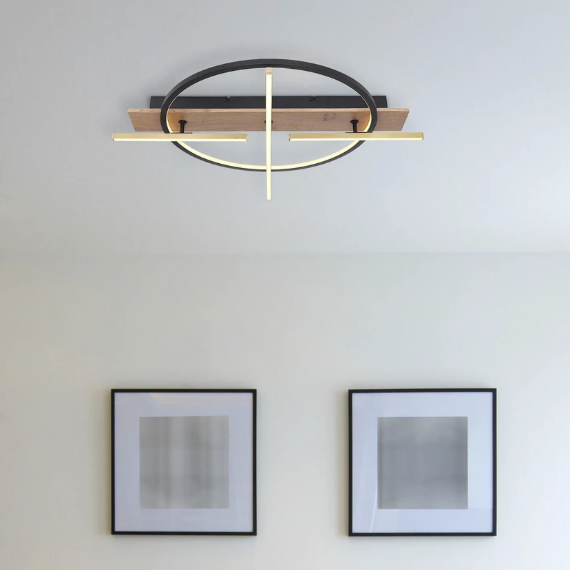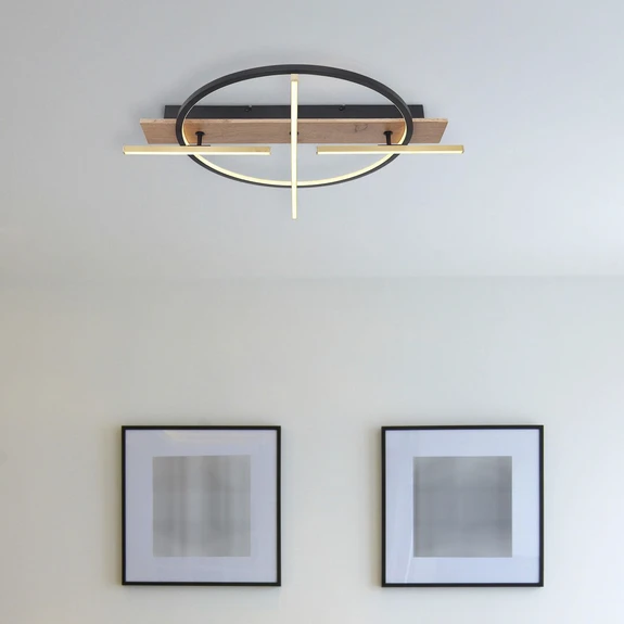 Plafoniera Beatrix LED, lunghezza 44 cm, legno/nero, legno