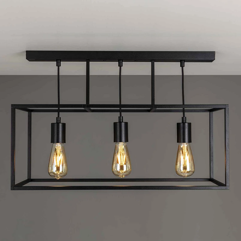 La plafoniera Cubic³ a tre lampade è realizzata interamente in ottone e verniciata di nero, quindi non c'è limite alla sua combinazione con altri colori interni. Anche dal punto di vista stilistico, la plafoniera a distanza dal design molto lineare si adatta a molte varianti abitative. Poiché la vista delle tre prese e quindi anche delle lampade utilizzate rimane libera, è possibile conferire all'apparecchio un particolare effetto vintage inserendo lampade dall'aspetto rustico.