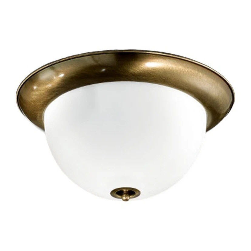 Plafoniera classica Galleria con bordo in ottoneIl paralume in vetro bianco della plafoniera Galleria, molto curvato verso il basso, è ornato da un elemento decorativo in ottone e fissato al soffitto con una cornice in ottone antico. Questa plafoniera classica illumina il corridoio, il soggiorno o la camera da letto in modo piacevole e senza abbagliare. Questa plafoniera Galleria di alta qualità è un prodotto italiano di altissima qualità e di ottima fattura.
