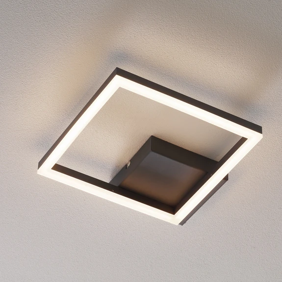 La lampada è costituita da un quadrato grigio-antracite e da un elemento luminoso quadrato sovrapposto, con un telaio anch'esso grigio scuro e con LED bianco caldo. Il design è semplice e lineare, quindi la plafoniera è combinata con tanti stili di arredo. La plafoniera dimmerabile non solo di una bellezza intramontabile, ma è anche altrettanto pratica.