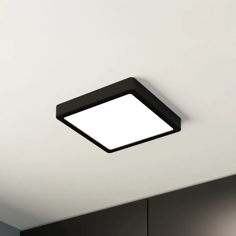 Plafoniera LED Fueva 5, IP20 nero 21x21cm