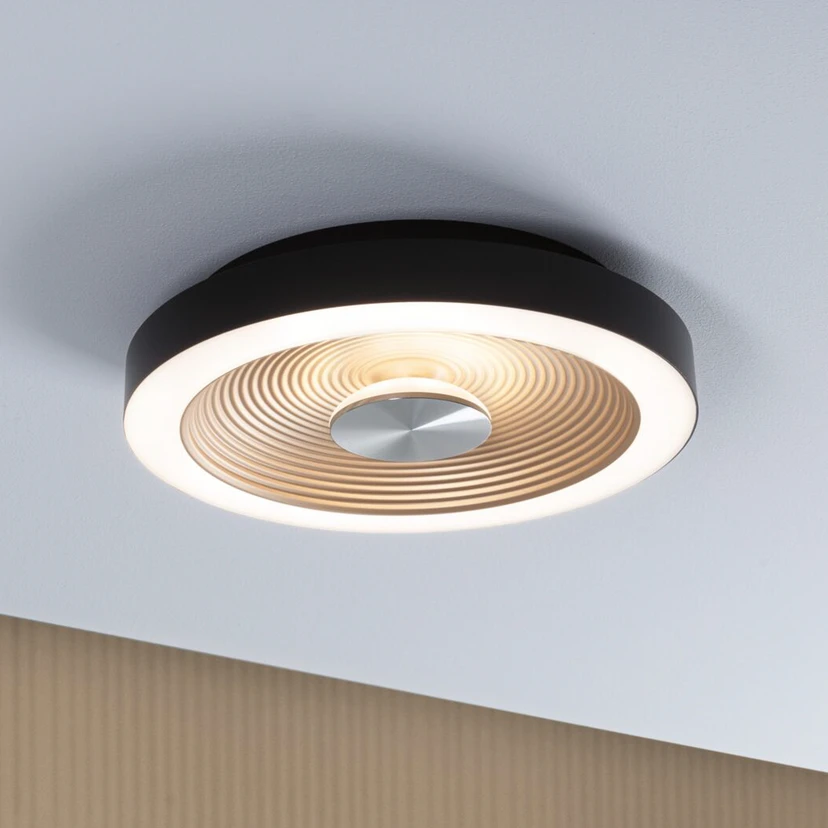 La plafoniera LED Paulmann Volea combina un design moderno con un'illuminazione funzionale. L'elegante combinazione di colori nero e oro conferisce a ogni ambiente un tocco di stile. Grazie alla sorgente luminosa a LED integrata, la lampada offre un'illuminazione uniforme e a risparmio energetico. Con un colore di luce bianco caldo di 3.000 K, crea un'atmosfera piacevole, ideale per soggiorni, sale da pranzo e bagni, ma anche per corridoi e cucine.