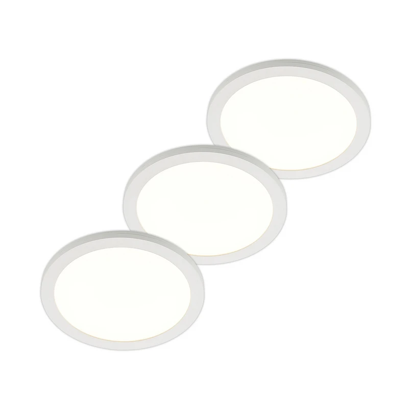 Semplice plafoniera LED Aureka con sensore radar integrato e colore di luce preimpostabile in set da 3, adatta per l'incasso e il montaggio in superficie Aureka colpisce per il suo design semplice e, per quanto sia rotonda e bianca, può essere utilizzata sia in ambito privato che commerciale. La plafoniera LED è anche una fonte di luce con un alto livello di funzionalità, in modo che l'illuminazione possa essere adattata in modo ottimale alle condizioni del luogo. Aureka non solo può essere montata a superficie sul soffitto, ma può anche essere utilizzata come luce LED da incasso extrapiatta e il colore della luce può essere impostato con un interruttore DIP prima dell'installazione. Il sensore si rivela anche molto pratico, poiché non è necessario alcun interruttore per accendere l'apparecchio: è sufficiente la presenza di una persona. Il raggio d'azione del rilevatore di movimento è di 4-6 metri e la durata della luce è di 40 secondi. Diametro di installazione: - Variante 1 (22,5 cm): 6,5 cm - 21 cm - Variante 2 (33 cm): 6,5 cm - 31 cm - Fornito in un pratico set di 3 pezzi
