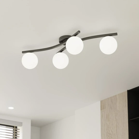 Plafoniera Opus a 4 luci in opale e nero La plafoniera Opus combina un design moderno con materiali di alta qualità ed è prodotta in Europa. Con il suo elegante gioco di vetro e acciaio, crea accenti di stile in qualsiasi ambiente. La combinazione di colori opale e nero conferisce alla lampada un'estetica senza tempo che si integra perfettamente in una varietà di stili di interni - dimmerabile esternamente