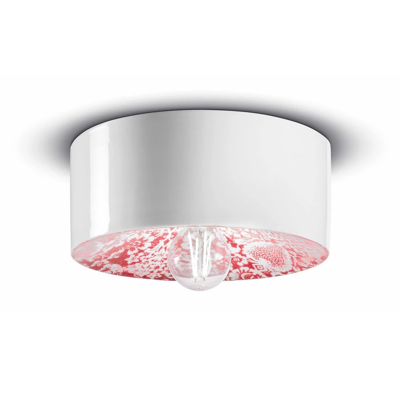 Plafoniera PI, motivo floreale Ø 25 cm rosso/bianco
