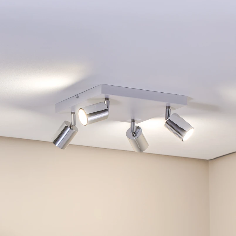 Plafoniera Tune II, bianco/cromo, metallo, a 4 luci, quadrata