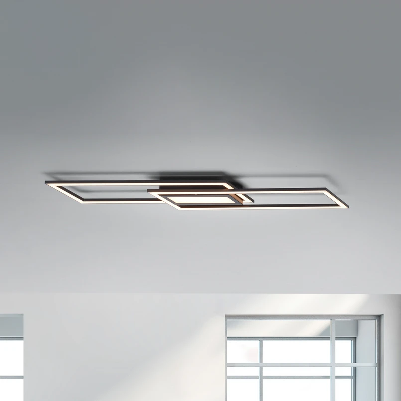 Plafoniera LED nera Asmin con due rettangoli, dimmerabile