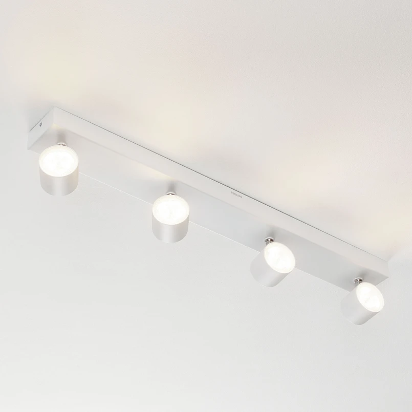 Illuminazione avvolgente e sempre intonata al momento: non ci sono zone della casa dove non torni utile questo flessibile spot LED quadruplo. La testate si possono orientare in ogni direzione e i LED incorporati si prestano al dimming. La particolarità è che riducendo l'intensità la luce assume una colorazione sempre più calda e raccolta, il cosiddetto effetto Warmglow. Si garantisce così un'illuminazione morbida e accogliente, sempre adatta al contesto: dal lavoro in cucina al relax serale in salotto. Con il sistema di montaggio Click-Fix la lampada si fissa in poche operazioni.