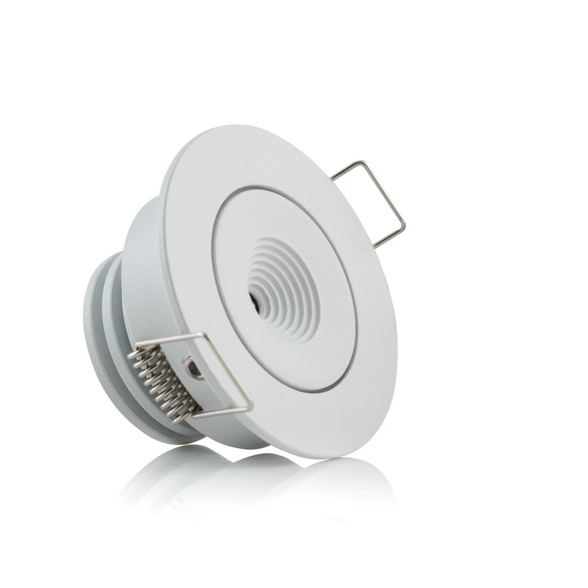 Piccola plafoniera MiniOne a incasso, orientabile La plafoniera LED da incasso rotonda MiniOne è una scelta discreta per l'illuminazione generale degli interni Mod. L'apparecchio da incasso può essere utilizzato sia in interni privati che pubblici ed è adatto anche ad ambienti umidi come bagni e aree termali grazie alla sua protezione dagli spruzzi (IP44). MiniOne può essere installato in piccole aperture da incasso grazie alle sue dimensioni compatte. In caso di funzionamento congiunto di più unità, la distanza tra di esse può essere adattata alle condizioni dell'ambiente grazie al cavo di collegamento lungo 3 m. La fornitura non comprende il reattore; a seconda del numero di apparecchi da fornire, questo può essere ottenuto in una versione adeguata tramite gli accessori. - Ottima resa cromatica (Cri > 90) - Angolo del fascio di luce 120° - Orientabile di 40° su tutto il perimetro - Durata di vita L90B10 50.000 ore - Facile collegamento grazie ai terminali a innesto - Adatto al cablaggio passante