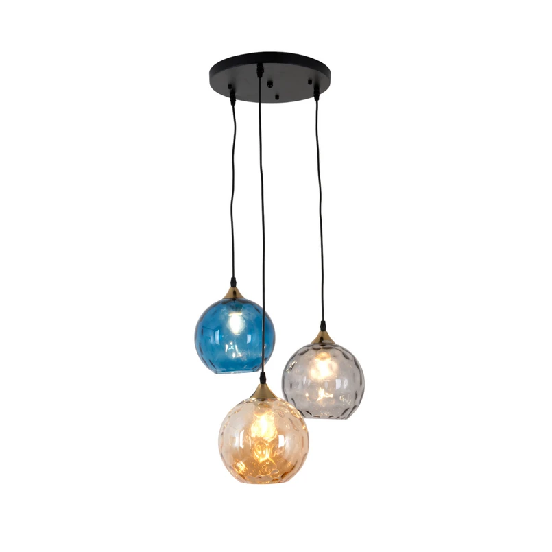 Sospensione La Spezia 3 luci vetro ambra/blu/fumè