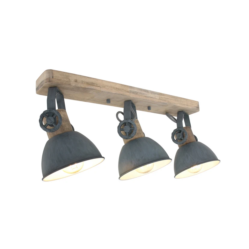 Spot da soffitto Gearwood, 3 luci lungo, grigio