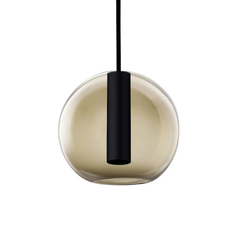 L'apparecchio a sospensione Trigga Loon Mini Volare LED è dotato di un adattatore corrispondente, che lo rende facile da installare nel binario Volare. Ha un cavo nero che sostiene il corpo cilindrico di alluminio altrettanto nero. I LED bianchi caldi sono integrati nel corpo. Inoltre, c'è un paralume sferico in vetro colorato, che ha un taglio sotto l'apertura della luce.