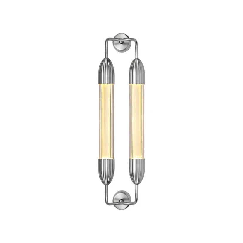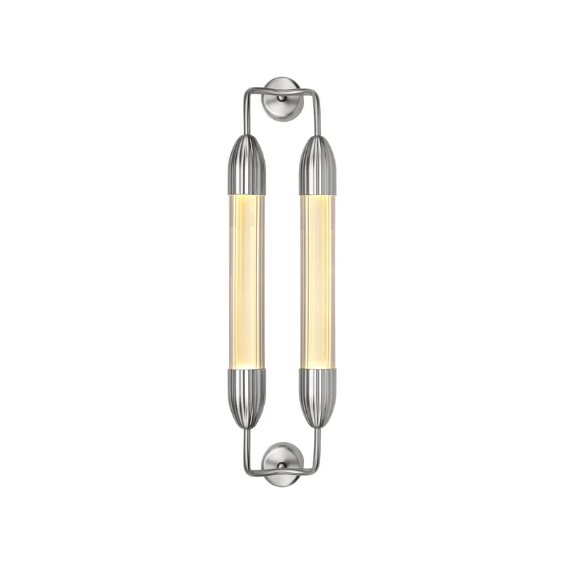 Applique Lemon Squeeze, due luci con portalampada GU10 L'applique Lemon Squeeze a due luci evoca sentimenti nostalgici e allo stesso tempo irradia eleganza contemporanea. È realizzata in acciaio e vetro estruso con onde distintive. All'interno delle due lampadine in vetro parallele, i tubi diffusori forniscono un'illuminazione morbida e uniforme. La serie di apparecchi Lemon Squeeze è un progetto di Søren Ravn Christensen, designer e cofondatore dell'azienda danese UMAGE. Salotti, corridoi, camere da letto e molte altre aree possono essere illuminate con l'applique Lemon Squeeze, creando un'atmosfera calma e armoniosa nella stanza. Con la sua estetica aggraziata e il suo bellissimo effetto luminoso, l'applique si integra in qualsiasi stanza e apporta un'illuminazione molto piacevole, calore e raffinatezza a qualsiasi ambiente. Le portalampada GU10 nel vetro tubolare possono essere dotate di sorgenti luminose a LED fino a 15 W.